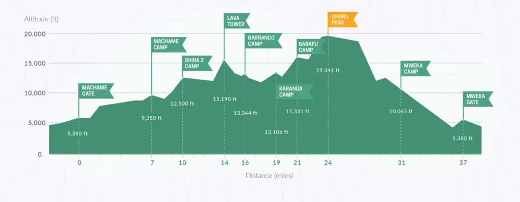 The Machame Route is one of the most popular options due to its beautiful scenery and high success rate
